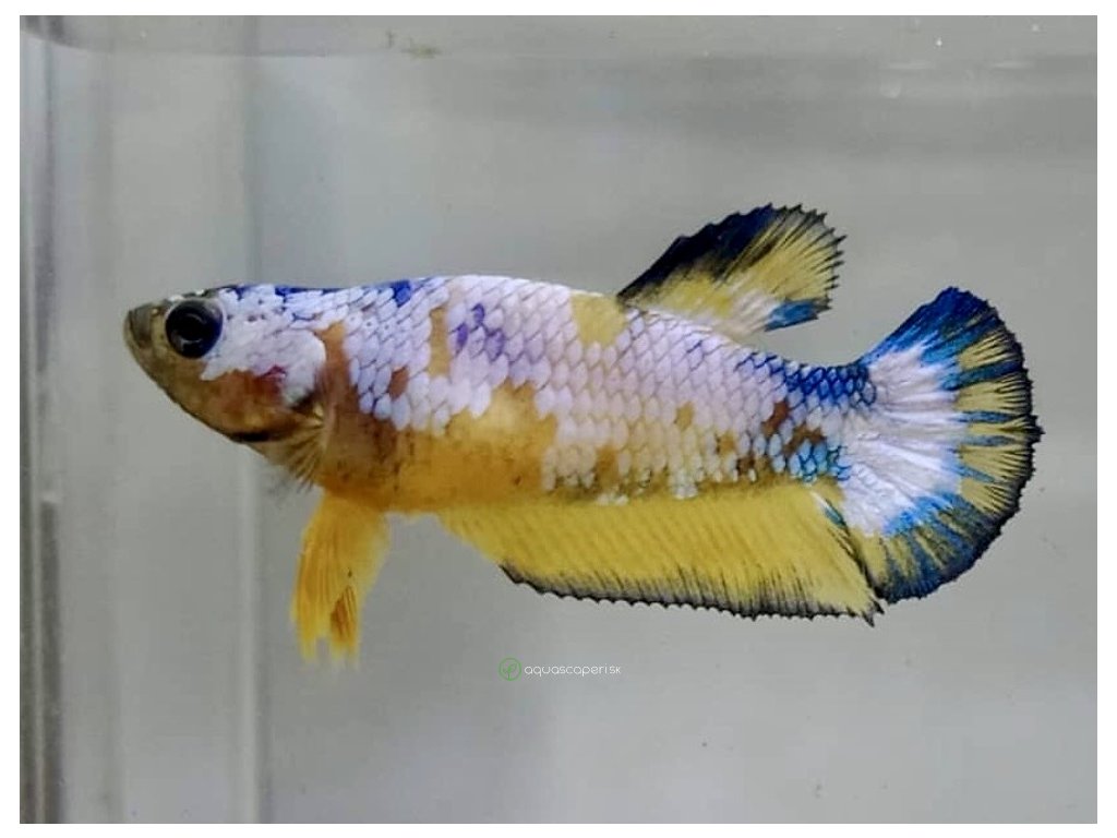 Plakat Fancy dorastá do veľkosti 6–7 cm. Jej stavba tela pripomína divoké betty – je kompaktná, silná a rýchla. Plutvy sú skrátené, no pôsobia širšie a kontrastovo sfarbené. Fancy vzorovanie často obsahuje: