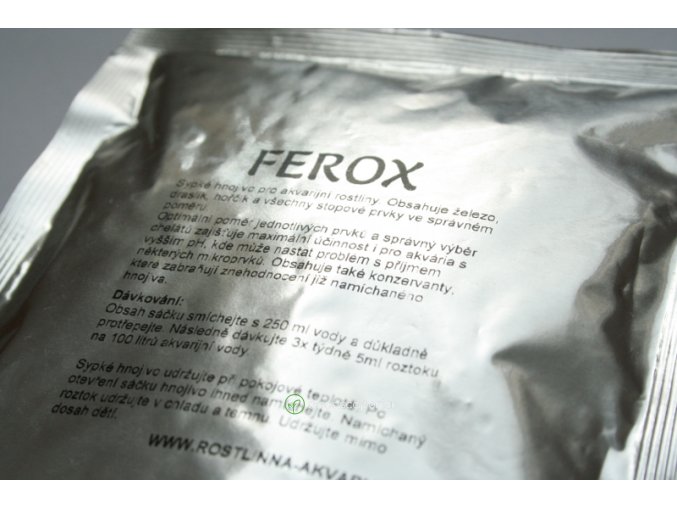 FEROX COMPLETE je vysoko koncentrované hnojivo obsahujúce vysoké dávky železa, mikroprvkov a draslíka vo forme prístupnej rastlinám. Neobsahuje dusík a fosfor, ktorý býva v bežných akváriách zastúpený vďaka odpadným látkam z ryb v dostatočnom množstve. Je určené pre bežné akvária s väčšími rybami. Ak prevádzkujete akvárium dobre osvetlené, použite INVITAL FEROX COMPLETE NPK, ktorý obsahuje aj dusík a aj fosfor vo vhodnom pomere.