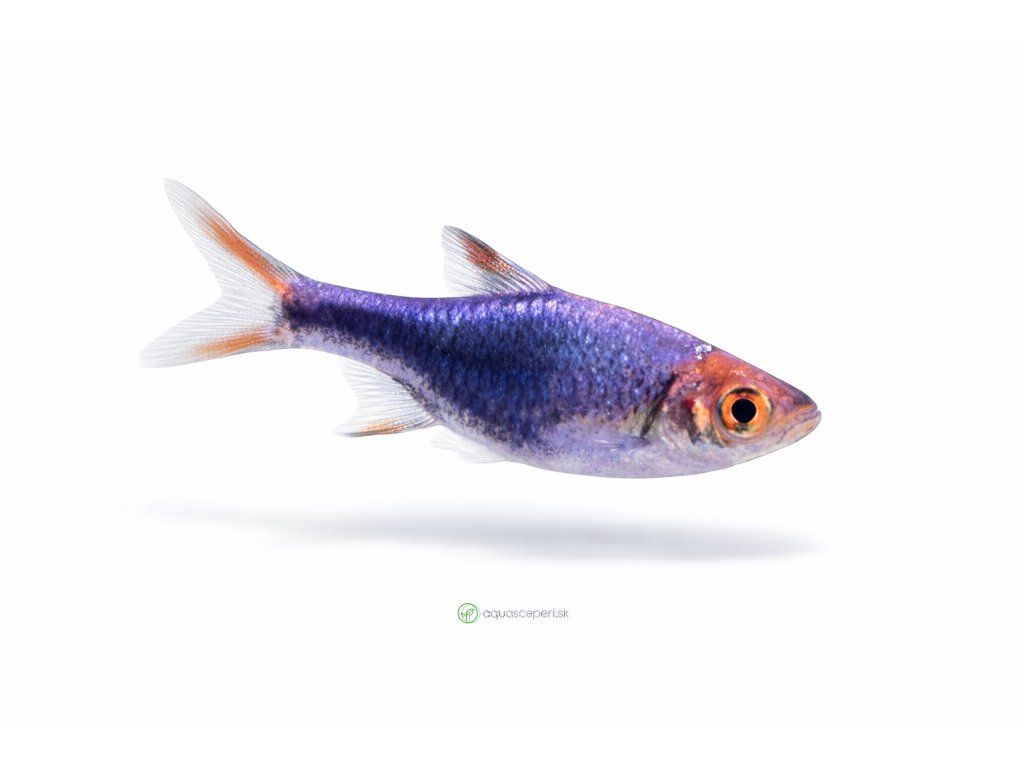 Razbora Purple Harlequin, označovaná aj ako Rasbora heteromorpha purple, patrí medzi veľmi atraktívne a elegantné akváriové ryby, ktoré vyniknú najmä v husto zarastených spoločenských nádržiach. Ide o farebnú variantu obľúbenej klinoškvrnnej razbory, ktorá si získava pozornosť výraznejším purpurovým až ružovkastým nádychom tela a typickým tmavým klinom na zadnej časti bokov. Vďaka svojmu hejnovému správaniu, pokojnej povahe a peknému pohybu v stredných vrstvách akvária je táto rybka veľmi obľúbená medzi začiatočníkmi aj skúsenými akvaristami.